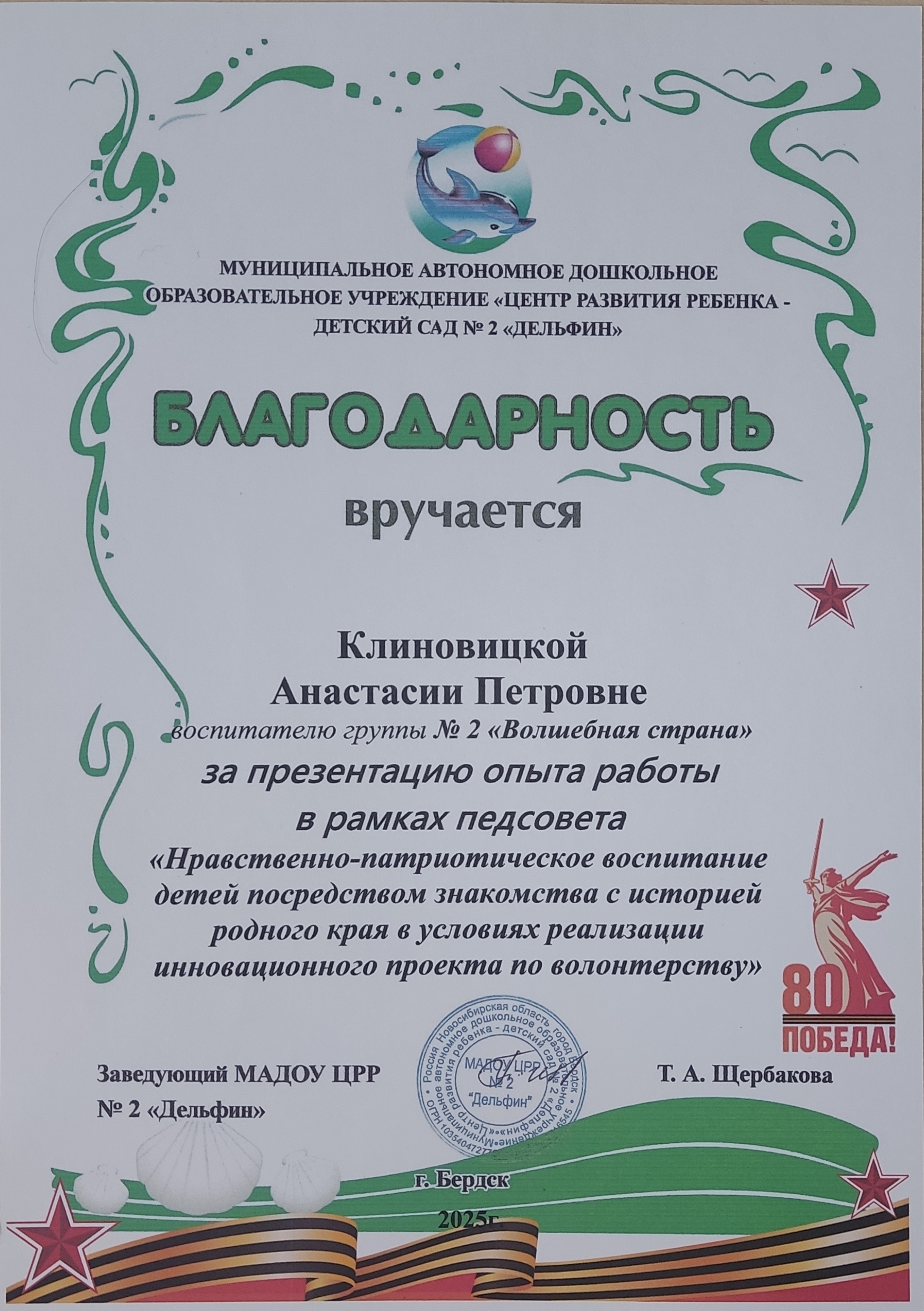 Презентация опыта работы в рамках педсовета "Нравственно - патриотическое воспитание детей посредством знакомства с историей родного края в условиях реализации инновационного проекта по волонтерству"